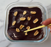 - Top with a drizzle of chocolate, peanuts & a pinch of sea salt.