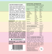 WHAT? - Enhances performance - Gives an energy boost (120mg caffeine) - No crash (No stimulants like synephrine or yohimbine that can cause energy crashes in other pre-workouts) - 250g - 25 servings WHO? Anyone who wants to optimise their workout performance. WHEN? 15-30 minutes prior to exercise. Sensitive to Caffeine? Try our stim-free pre-workout for similar benefits without the caffeine.