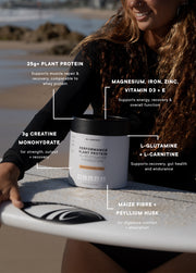 WHAT? - 4-in-1 Performance Protein - Protein. Creatine. Recovery. Micronutrients - 25g+ Plant Protein Blend - 3g Creatine for strength, output & recovery - L-Glutamine & L-Carnitine for recovery, gut health & endurance - Helps build muscle & repair muscle tissue. - HASTA™ Certified WHO? - Performance focused athletes - Anyone who trains to compete - Anyone who wants to optimise their workout performance - Suitable for Vegans, Vegetarians, Coeliacs or people with gluten sensitivities. WHEN? - Anytime of day - Within 1-2 hours after a training session to maximise muscle repair